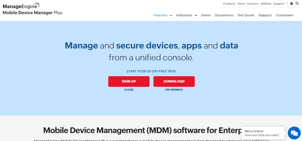 ManageEngine Mobile Device Manager Plus is a comprehensive Enterprise Mobility Management (EMM) solution designed to enhance productivity while maintaining enterprise-grade security. Available for both cloud and on-premises deployment, it supports a wide range of devices, making it ideal for diverse IT environments.